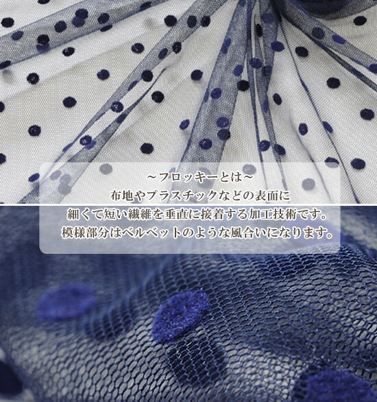 )少々訳あり幅広145cm チュール生地水玉フロッキーフロッキーとは布地やプラスチックなどの表面に細く短い繊維を垂直に接着する加工のことです。